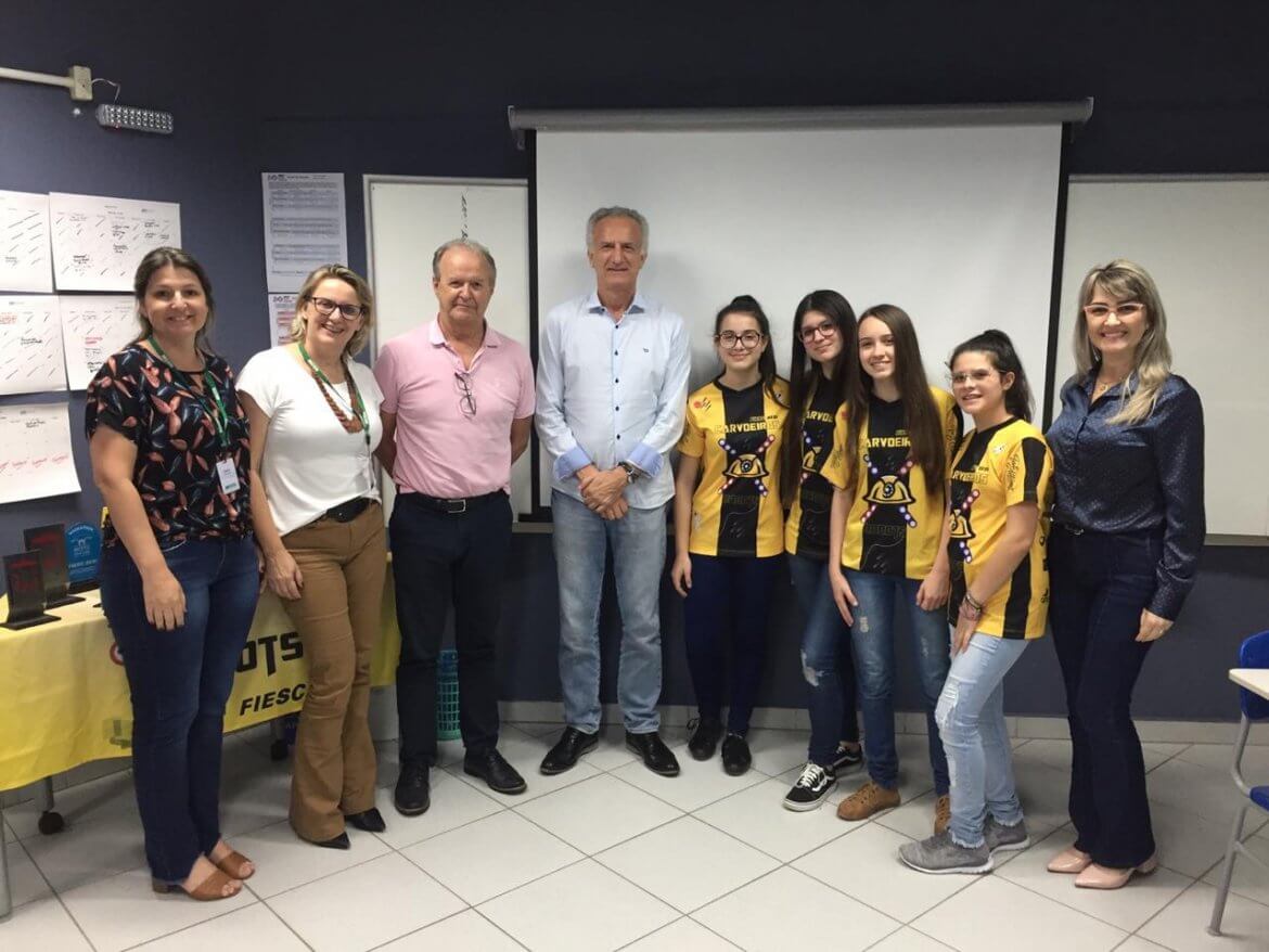 O presidente da Fontana, Olvacir Bez Fontana, esteve no SESI SENAI para visitar a turma de robótica e conheceu o projeto das jovens “Carvoeiras Robots”. As alunas estão fazendo uma pesquisa em cima de um estudo que pretende diminuir o custo com pinturas em faixas de pedestres.