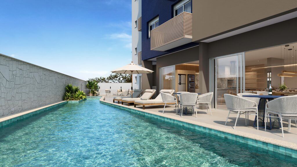 Piscina adulto e infantil, academia, salão de festas, brinquedoteca e espaços de convivência organizam a rotina com naturalidade. O lazer deixa de ser deslocamento e passa a fazer parte do dia.